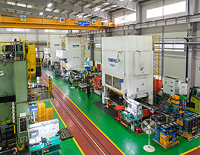 使用冲压加工技术开发本来以冲压加工生产困难了的加工密度高的产品并生产,实现提高划时代的生产性而且节减原价